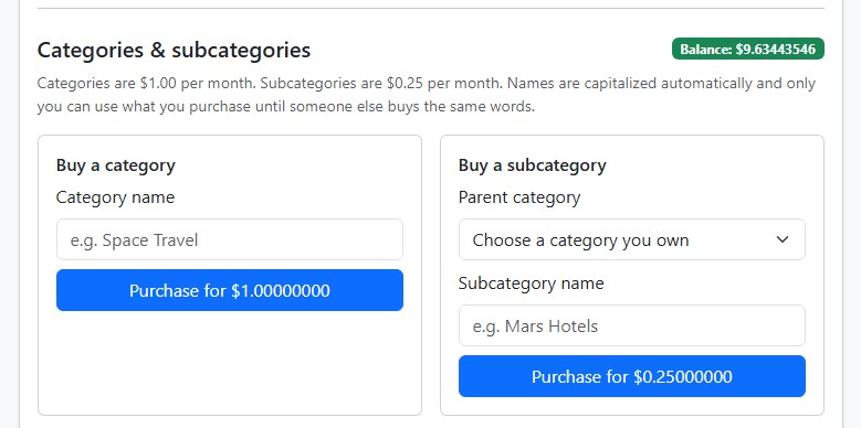 You can now purchase your own categories and subcategories for your posts -- on a monthly basis.I am considering allowing folks to also buy categories and resell them to others, but not sure if that makes sense.I purchased the "Customization" subcategory and added it under the nstfl posts.